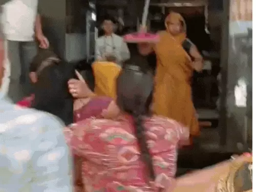 पुलिस ने दो युवकों सहित लगभग आधा दर्जन महिलाओं को हिरासत में लेकर थाने भेज दिया है। पुलिस मामले की जांच कर रही है।