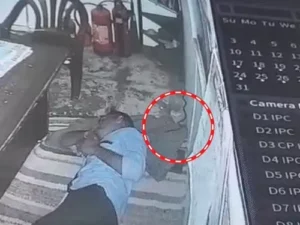 आगरा: पेट्रोल पंप पर सो रहे कर्मचारी को सांप ने डसा, CCTV में कैद हुई घटना