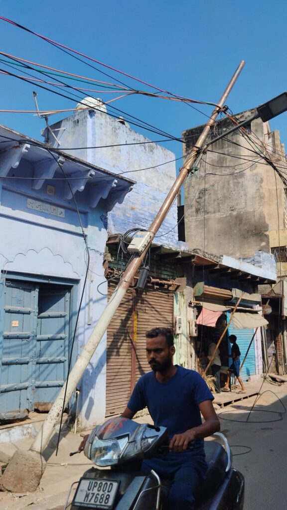 आगरा में जानलेवा साबित हो सकता है जर्जर बिजली का खंभा, टोरेंट पावर बेपरवाह