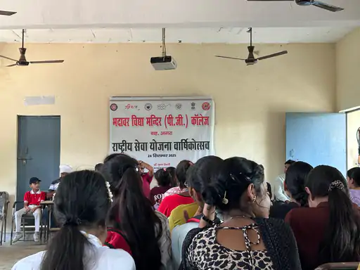 आगरा। भदावर विद्या मंदिर महाविद्यालय में बुधवार को राष्ट्रीय सेवा योजना (एनएसएस) का स्थापना दिवस धूमधाम से मनाया गया। इस कार्यक्रम का नेतृत्व एनएसएस कार्यक्रम अधिकारी डॉ. अनुज कुमार ने किया, जहां ‘स्वयं से पहले आप’ के आदर्श वाक्य को प्रमुखता से याद किया गया।